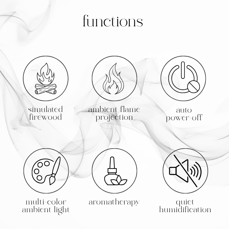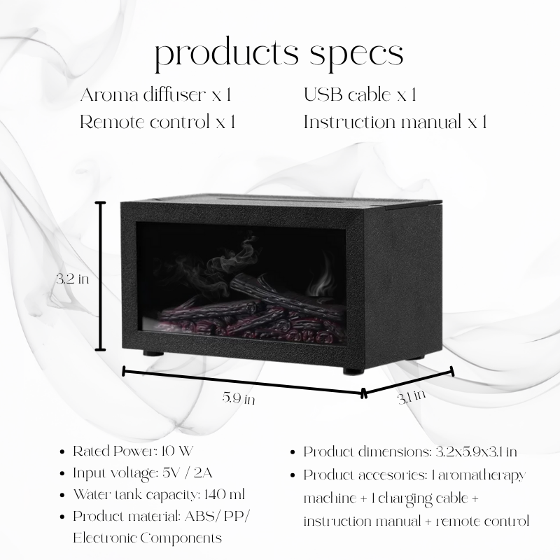 This elegant aromatherapy humidifier, shaped like a mini fireplace, doesn’t just fill your space with a soft, warm glow — it also releases a gentle aromatic mist that soothes your mind, eases tension, and enhances your overall well-being. Every detail of Embera is crafted to create a complete sensory experience: from your favorite scent to the subtle lighting that sets a calm, serene atmosphere — perfect for your living room, bedroom, or any space where you need a moment of peace.